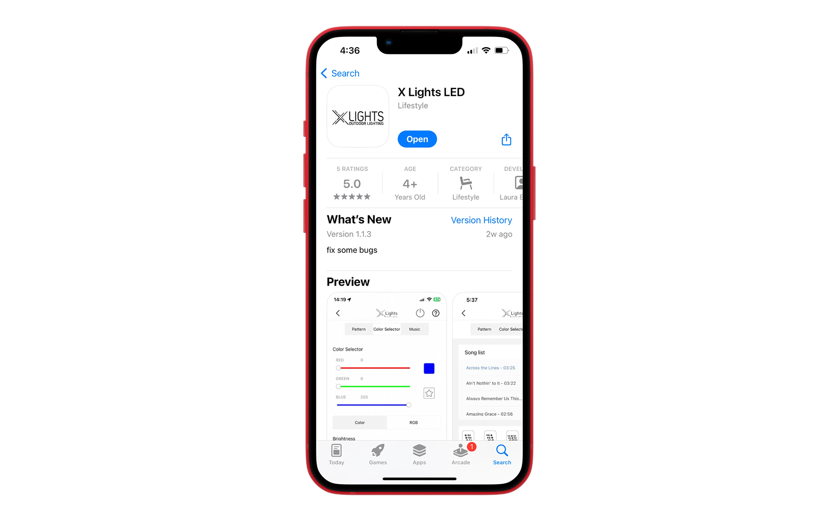 The X Lights App is available for both iOS and Android devices and supports full RGBW control for compatible fixtures.