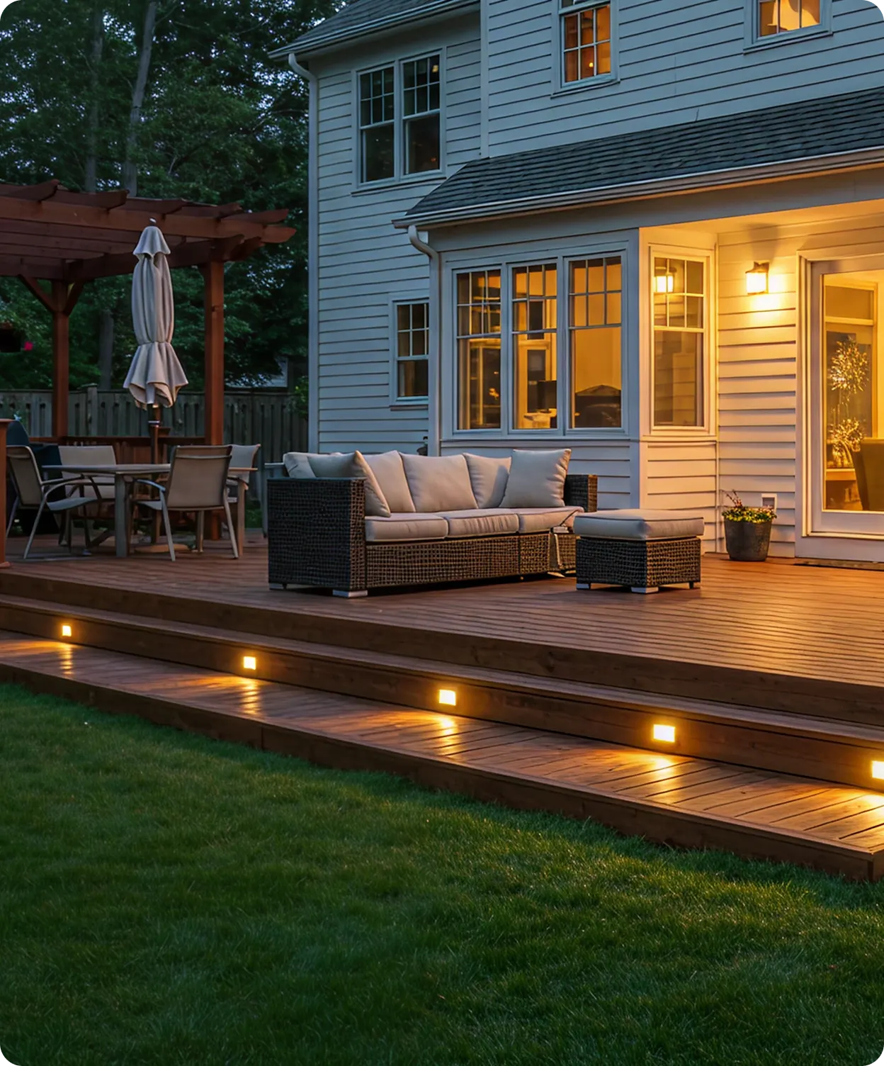 Transform your outdoor living area with innovative deck lighting solutions. Experience the perfect blend of style and functionality.